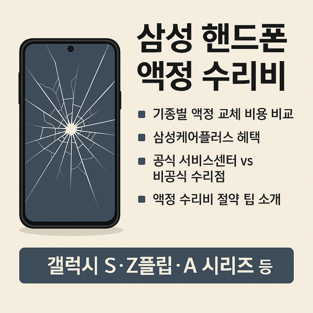 삼성 스마트폰 사용자라면 액정 파손을 피할 수 없을 때가 많습니다. 그렇기에 삼성핸드폰액정수리비를 사전에 파악하고, 보험 가입과 공식 수리센터 활용, 액정 반납 제도 등의 전략을 적극 활용하는 것이 중요합니다.